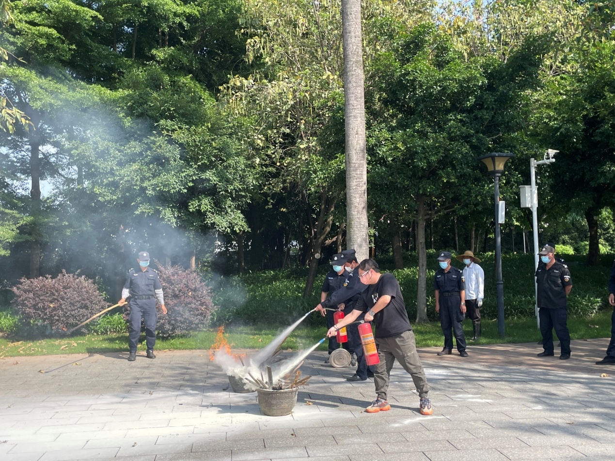 为强化安保专业能力,有效预防和处置各类伤害游客恶性事件的发生,学会正确使用灭火器和各类消防设备设施,提升保安队伍火灾防控能力和应急处突能力,保证公园的安全,安保中队积极组织开展应急防恐防爆、消防等演练。