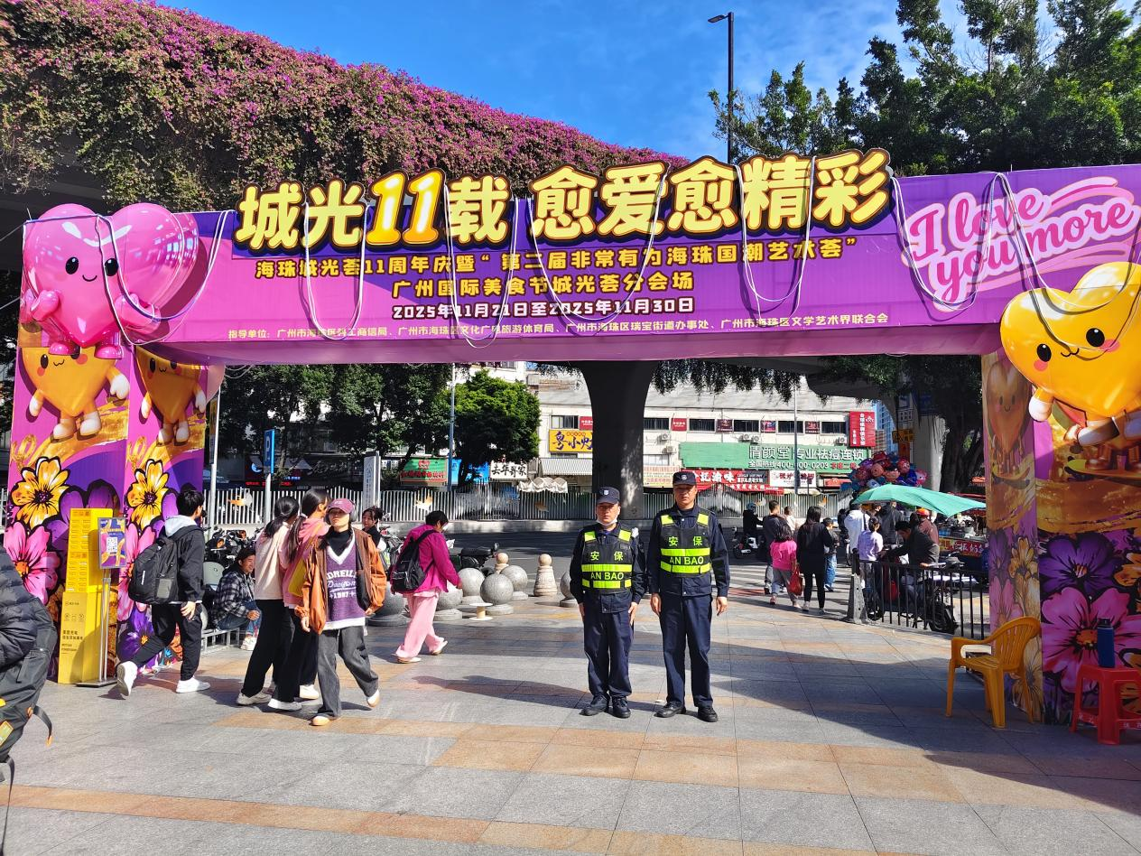 面对活动现场的巨大客流,瑞宝服务部每日派驻4名保安员维护现场秩序。队员们坚守岗位,积极对人群进行有序引导与分流,有效避免了人员过度拥挤与排队等候时间过长等问题,确保了活动的顺畅与安全。