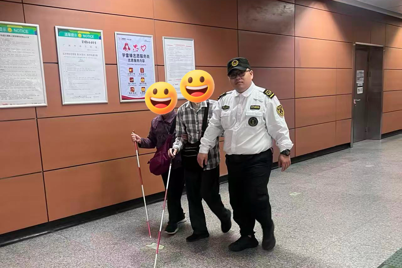 中午12时54分,广州地铁一号线西塱站,市总保地铁安检员陈咏樟注意到一对特殊的乘客——一男一女视障人士正摸索着走向安检点。他立刻放下手中的工作,快步上前询问是否需要帮助。