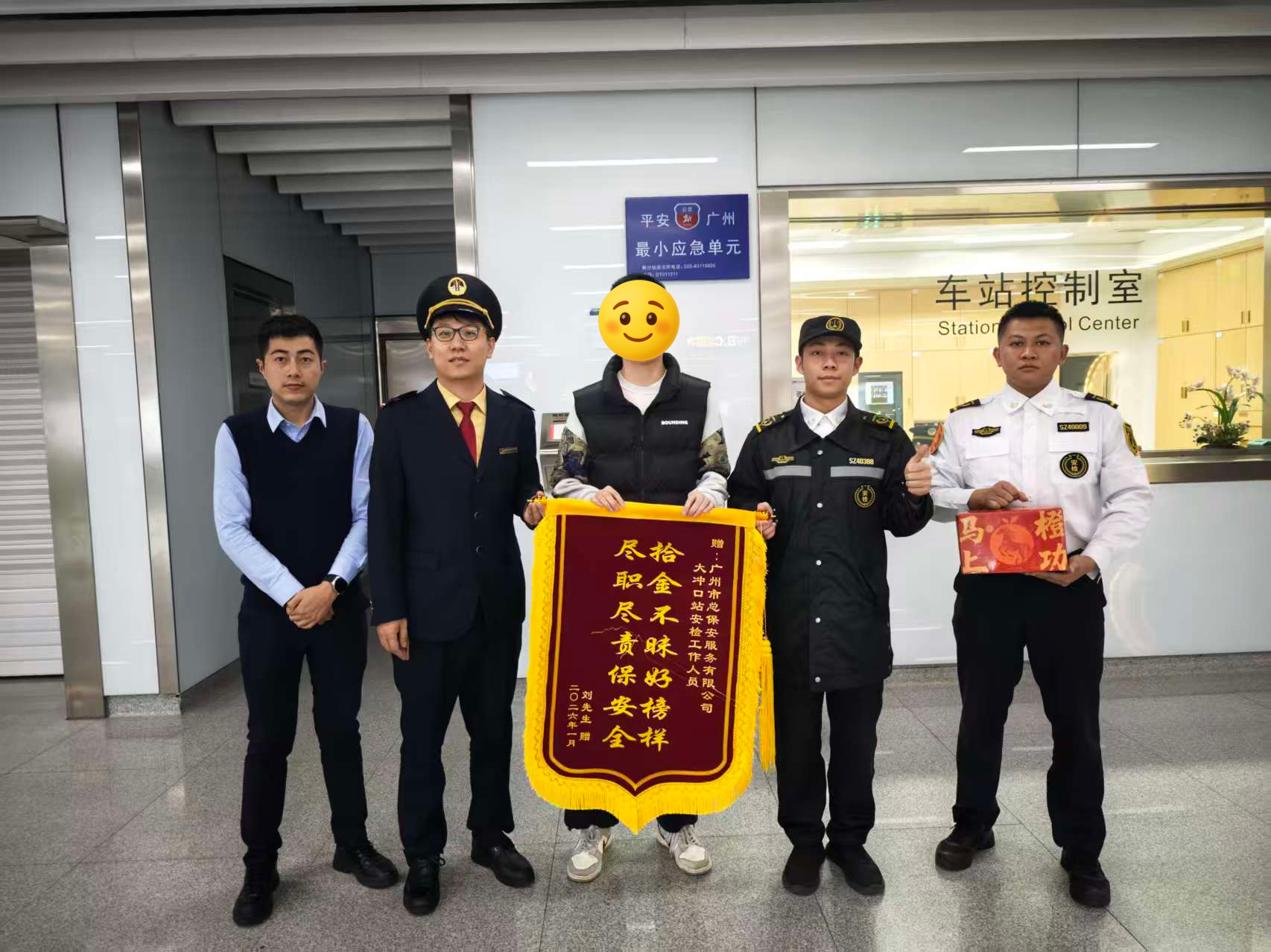 1月25日,心怀感激的乘客特意送来锦旗,再次向大冲口站安检工作人员表达谢意。他称赞道:“这种拾金不昧的行为值得赞扬和学习,感谢一线工作人员坚守本心、尽职尽责,为市民平安出行保驾护航。”