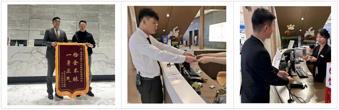 拾金不昧品德高:友林项目驻场负责人张惠健捡到手机后,多方设法寻回失主,还婉拒了失主的报酬,获赠锦旗以表敬意;商场项目队员赵瑞捡到手机后妥善保管,最终完璧归赵;队员刘志国捡到华为手表,第一时间交回服务台……他们用最朴实的行动,诠释着友林人的诚信本色。
