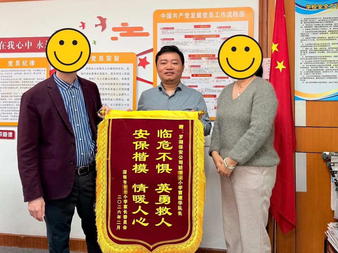 2026年2月,深圳市罗湖区学校家委会代表将一面书写“临危不惧,英勇救人,安保楷模,情暖人心”的锦旗,送至罗湖保安公司驻学校保安队长曹建华手中,对其挺身救人的义举表达诚挚感谢。