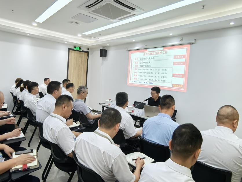 按照上级党委党纪学习教育工作部署安排,为深入开展党纪学习教育,进一步学深悟透《中国共产党纪律处分条例》,切实做到学纪知纪明纪守纪。2024年5月30日,在广州市天河保安服务有限公司多媒体会议室,开展学习贯彻《中国共产党纪律处分条例》做新时代遵规守纪的合格党员的专题党课学习。广州市天河保安服务有限公司党支部书记朱鑑波、党支部副书记施革胜、监事会主席吴剑平、副总经理徐文光、梁权、工会主席杜彬等40多名党员、领导干部、团支委成员参加。