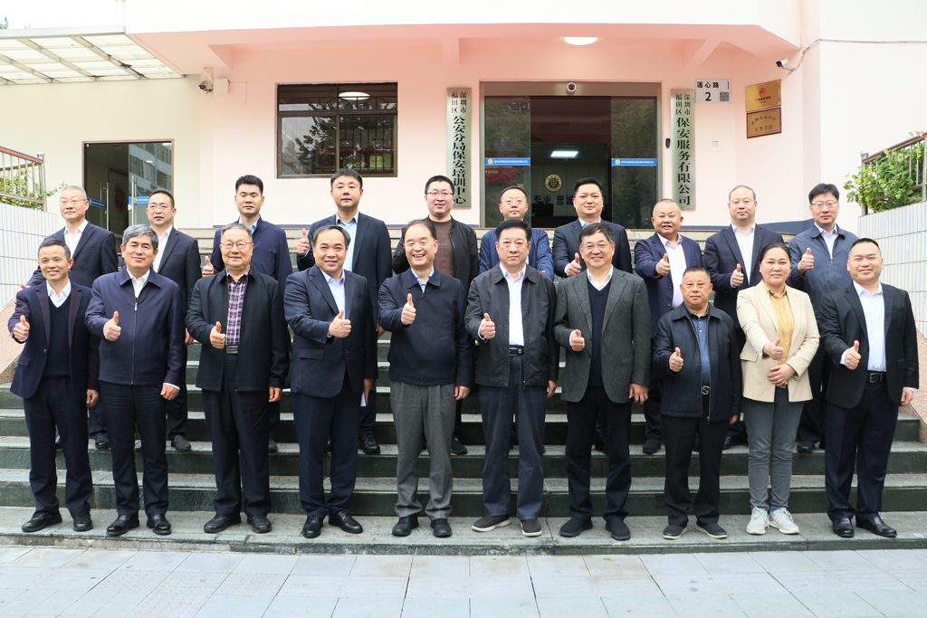 2月20日上午,中国保安协会会长杜航伟,常务副会长、秘书长华敬锋,副会长赵水芳一行莅临福田保安公司开展调研指导工作,广东省保安协会会长张绍新、深圳市保安协会会长曲晓顺、福田区委常委、副区长李志东及区财政局(国资局)二级调研员苏玉霞等相关领导、福田保安公司董事长刘汉新、总经理吴凯等领导陪同调研。