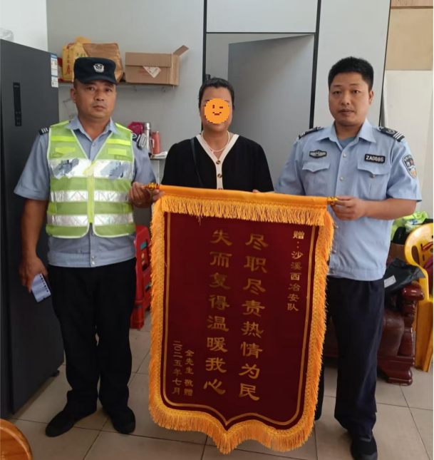 后来,失主专程赠送一面写有“尽职尽责热情为民 失而复得温暖我心”的锦旗到西畔里分队致谢。