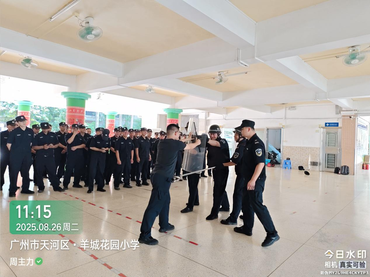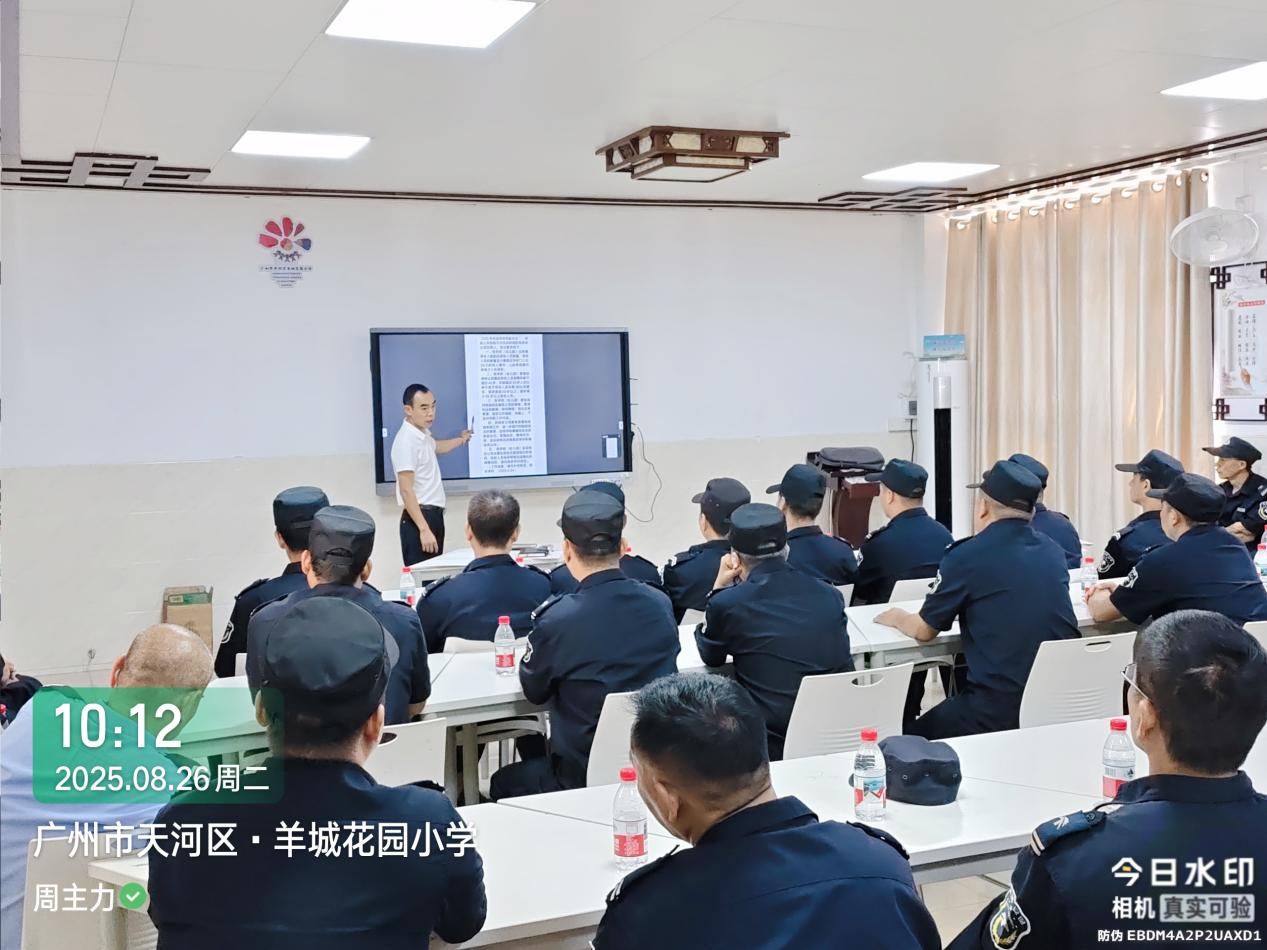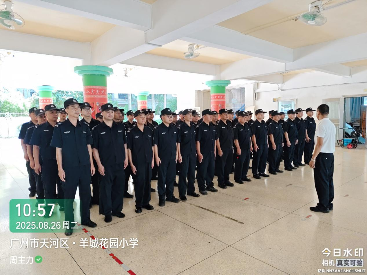 随着2025年秋季新学期临近,为切实守护广大中小学生及幼儿园的校园安全,筑牢校园安全防线,广州市天河保安服务有限公司近期分批在各派驻学校,开展“护航开学季”专项培训,全力为服务各中小学、幼儿园平安开学保驾护航。