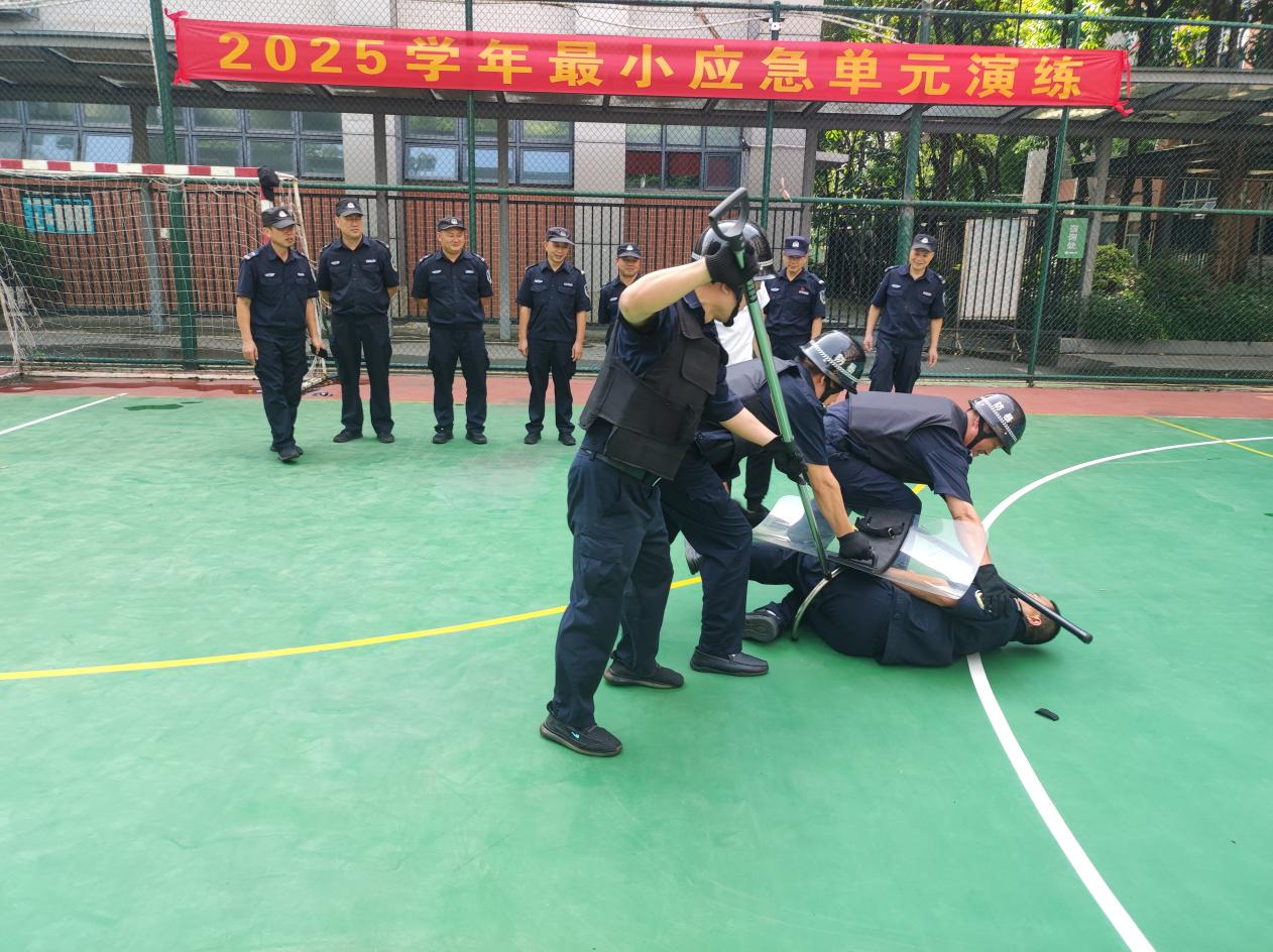 为进一步检验培训效果,提升队员应对突发情况的实战能力,还组织开展了模拟“歹徒闯校”、“校园滋事”等场景的应急演练。演练前,详细讲解演练流程、角色分工及注意事项;演练过程中,模拟“歹徒”试图强行闯入校园,安保队员迅速反应,按照预设方案默契配合,利用钢叉、盾牌等器械快速将“歹徒”控制,整个过程紧张有序,处置及时高效。通过此次演练,不仅有效提升了保安员的应急处突能力,也让队员们在实战模拟中积累了宝贵经验,为应对校园各类突发事件奠定了坚实基础。