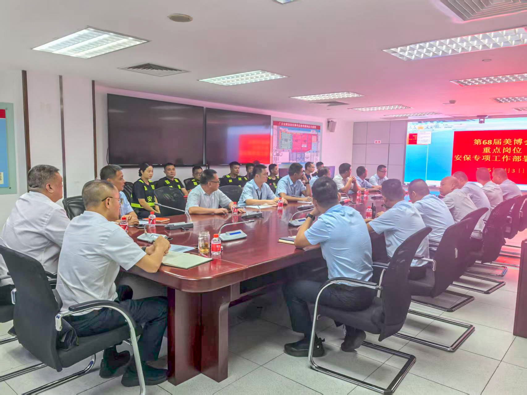 为确保美博会安全秩序,做好各项安保服务工作,海保集团党委高度重视,提前对接主办方,高标准制定《美博会保安服务工作方案》及《突发情况应急处置流程》,完善“公安、主办、场馆、海保”四方联动沟通协调机制,构建“集团统筹指挥、服务部具体执行、岗位包干负责”三级责任体系。