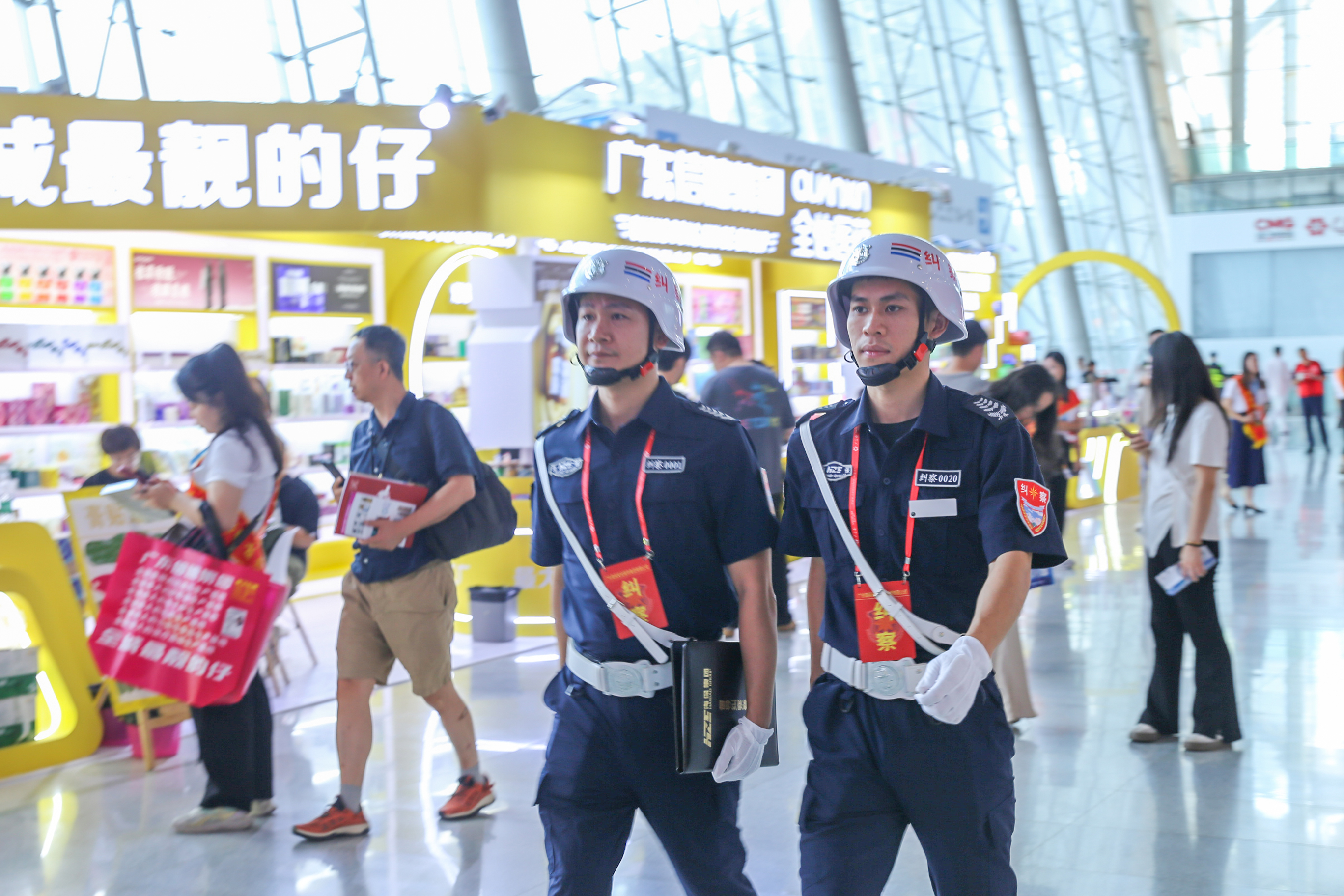 开展首日,全体海保卫士坚守岗位、尽职尽责,高效完成安检验证、人流疏导、巡查整治等各项工作,确保入场人员的安全和秩序。针对往届美博会“人流拥堵、小广告泛滥、强制扫码”等突出问题,本届展会强化了现场精准管控,在入口处、主通道增派机动力量,高峰时段即时启动人流疏导应急预案,确保通道宽度达标、无堵塞滞留。