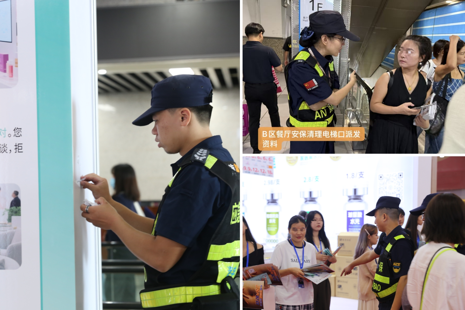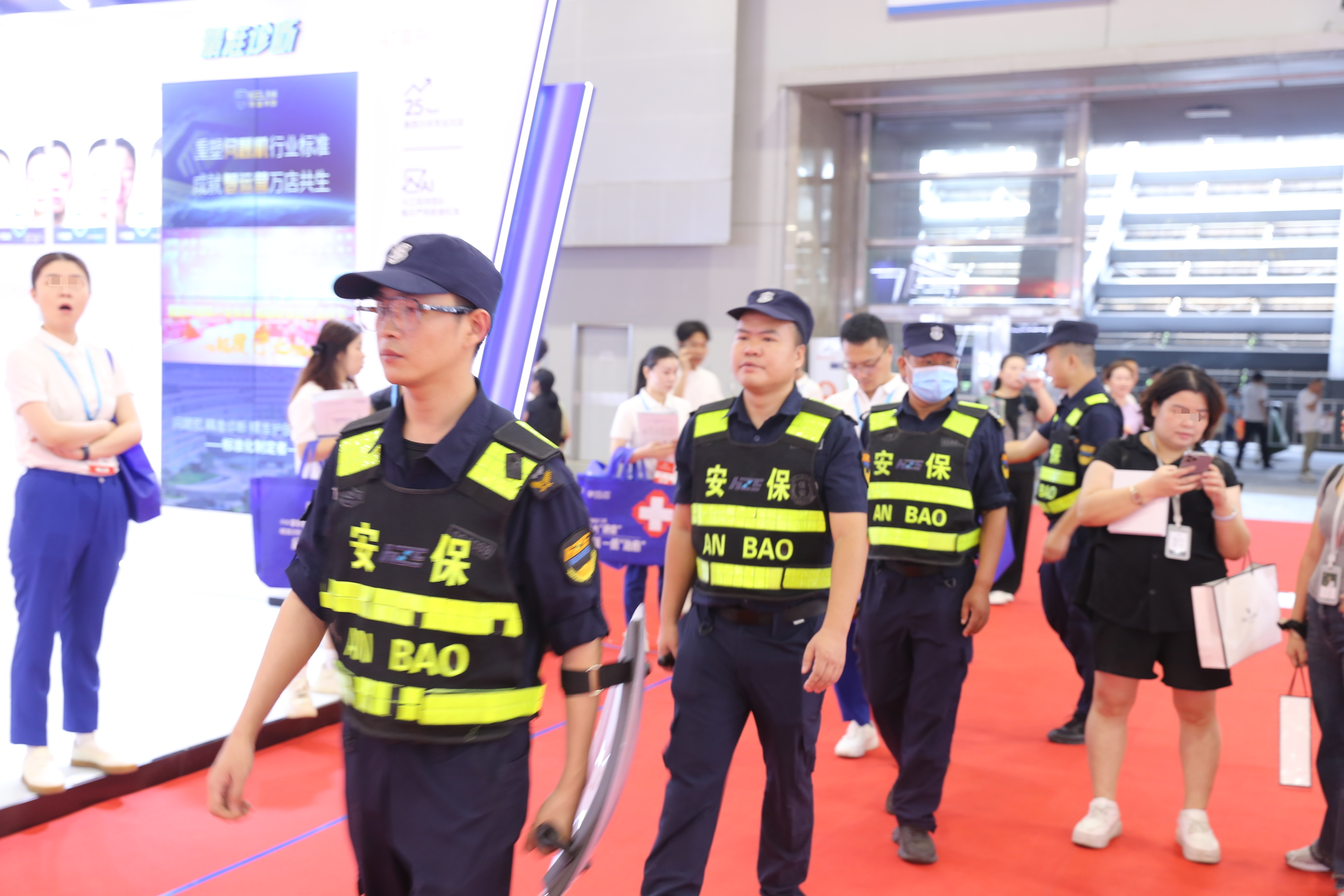 为提升美博会安保服务质量,海保集团采取有效措施:一是提高用人标准,保安员100%持证上岗;二是强化业务培训,提前安排会展礼仪规范与应急消防培训,同步发放《岗位职责》电子卡片,要求保安员熟记;三是加强监督管理,增派36名管理骨干、两组纠察和一组督导,重点检查岗位纪律、形象、履职尽责及服务标准,保障展会服务质量提升。