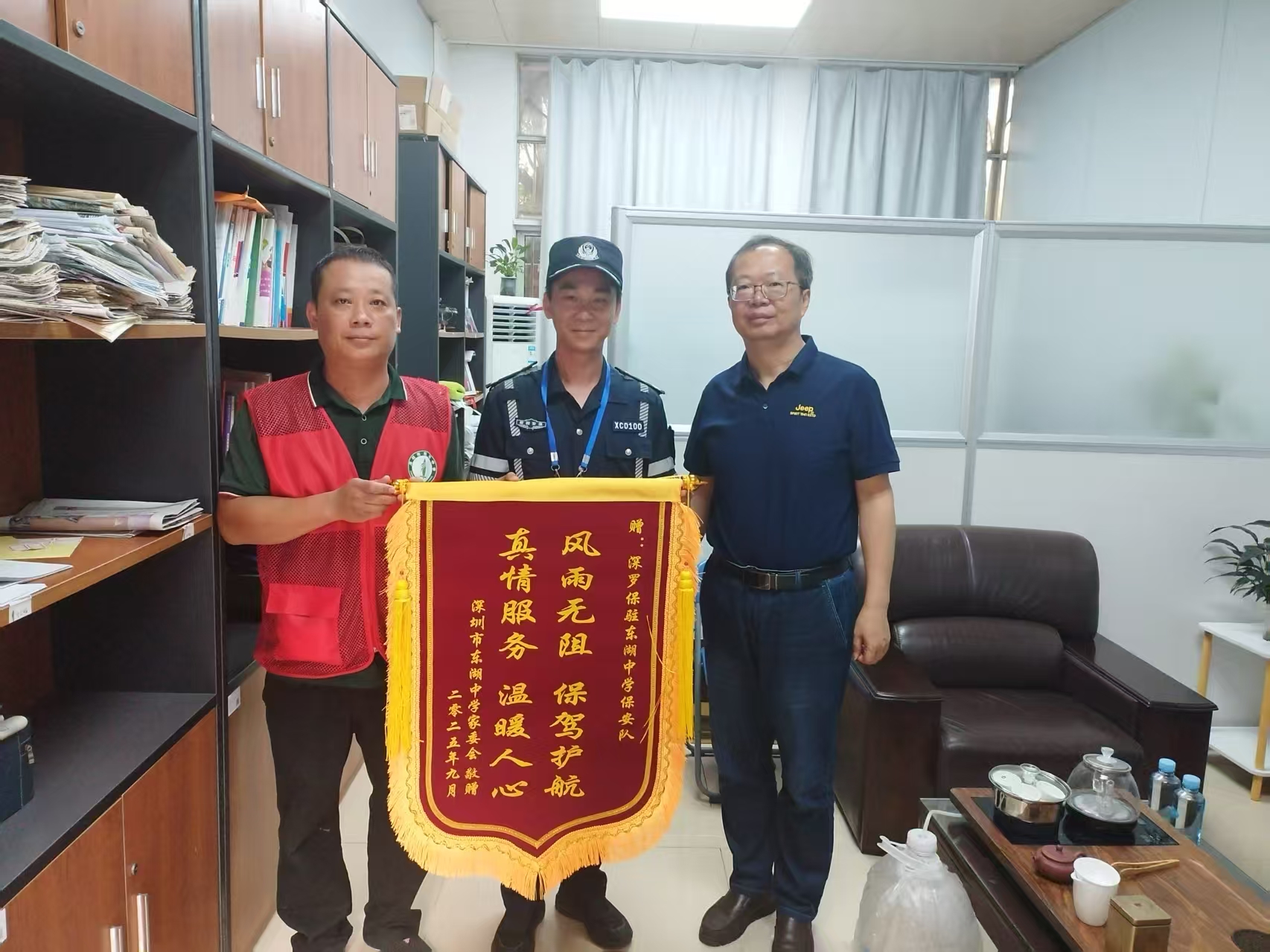 9月11日,罗湖保安公司直营部派驻东湖中学保安队收到了来自学校家委会的锦旗,这面承载着家长们真挚心意的锦旗,不仅是对保安队工作的高度肯定,更是对罗湖保安保公司校园安保服务的莫大褒奖。