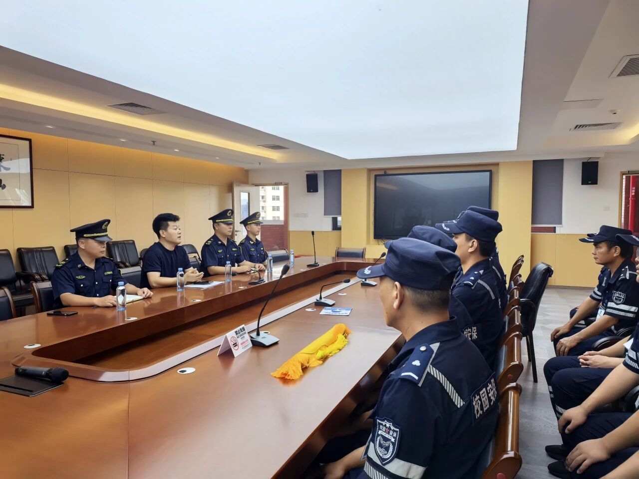 为表彰东湖中学保安队的优异表现,传递公司关怀,9 月12日,罗湖保安公司副总经理杨剑同志专程前往学校,为保安队发放慰问金,鼓励队员们继续以高标准、严要求做好校园安保工作。