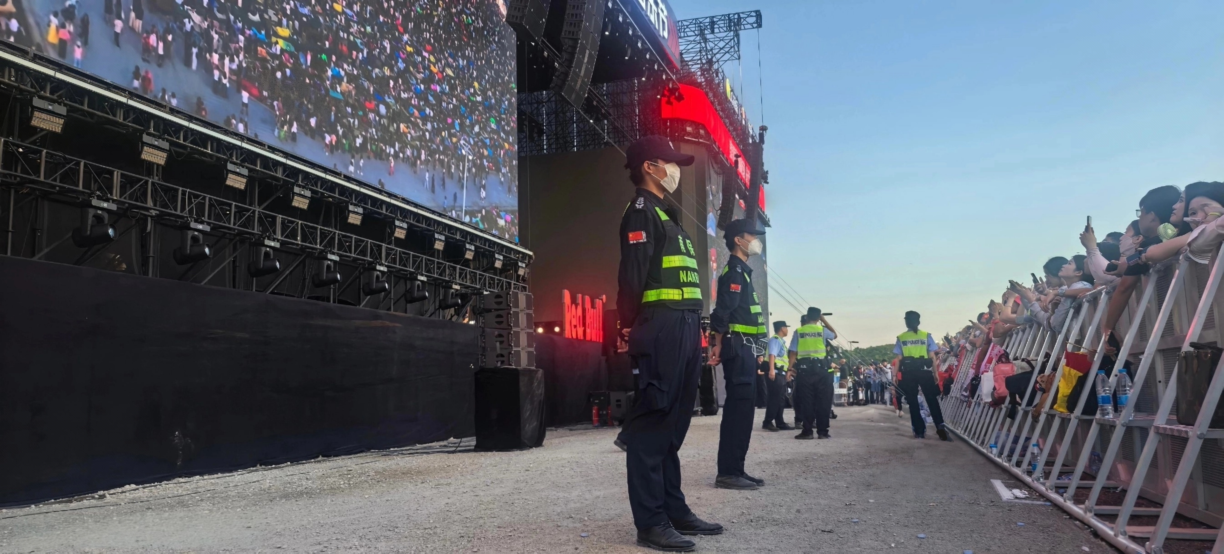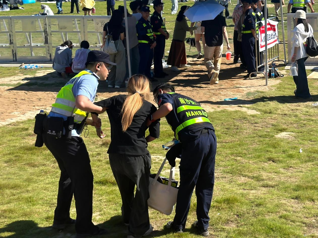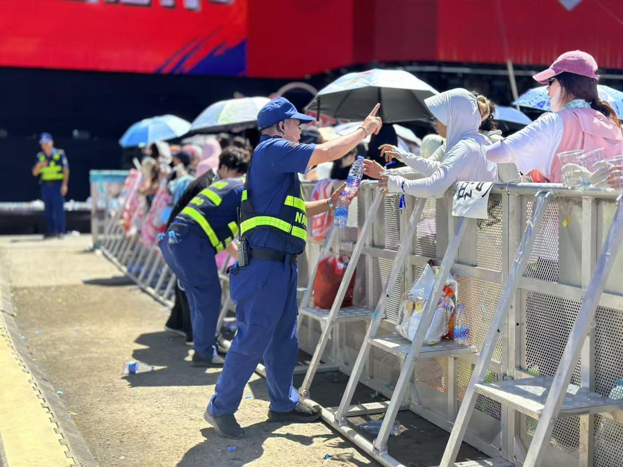 从乐迷入场时的指路引导,到观演中回应各类求助,安保人员始终热情耐心:发现有观众中暑,立即护送前往医疗点;遇到迷路的小女孩,主动帮忙寻找家人;看到现场群众口渴,及时分发矿泉水……从骄阳似火的午后,到皓月当空的夜晚,他们不仅坚守岗位履行安保职责,更用一个个暖心举动,让“安全”与“温暖”同行,陪伴乐迷从乘兴进场到尽兴散场。