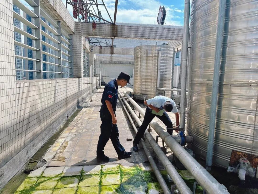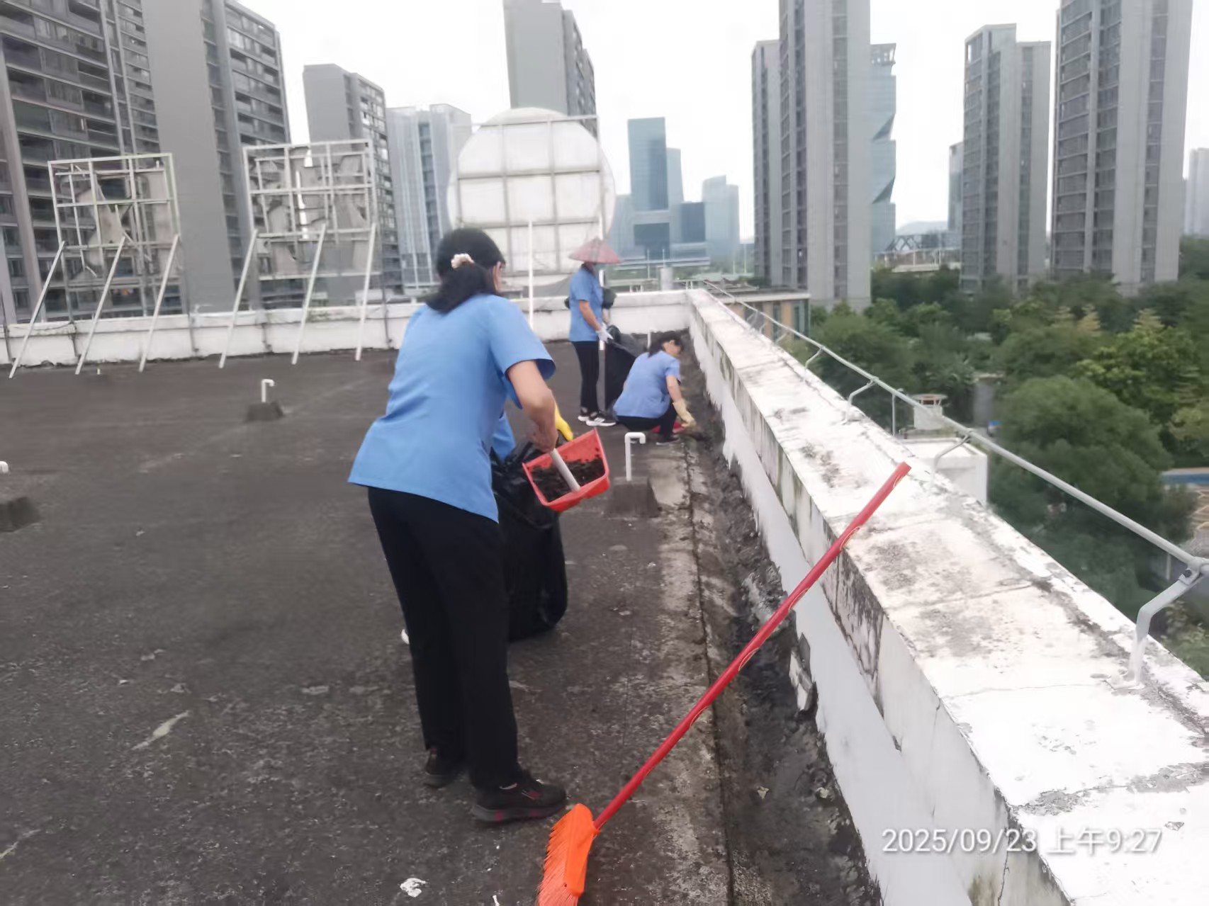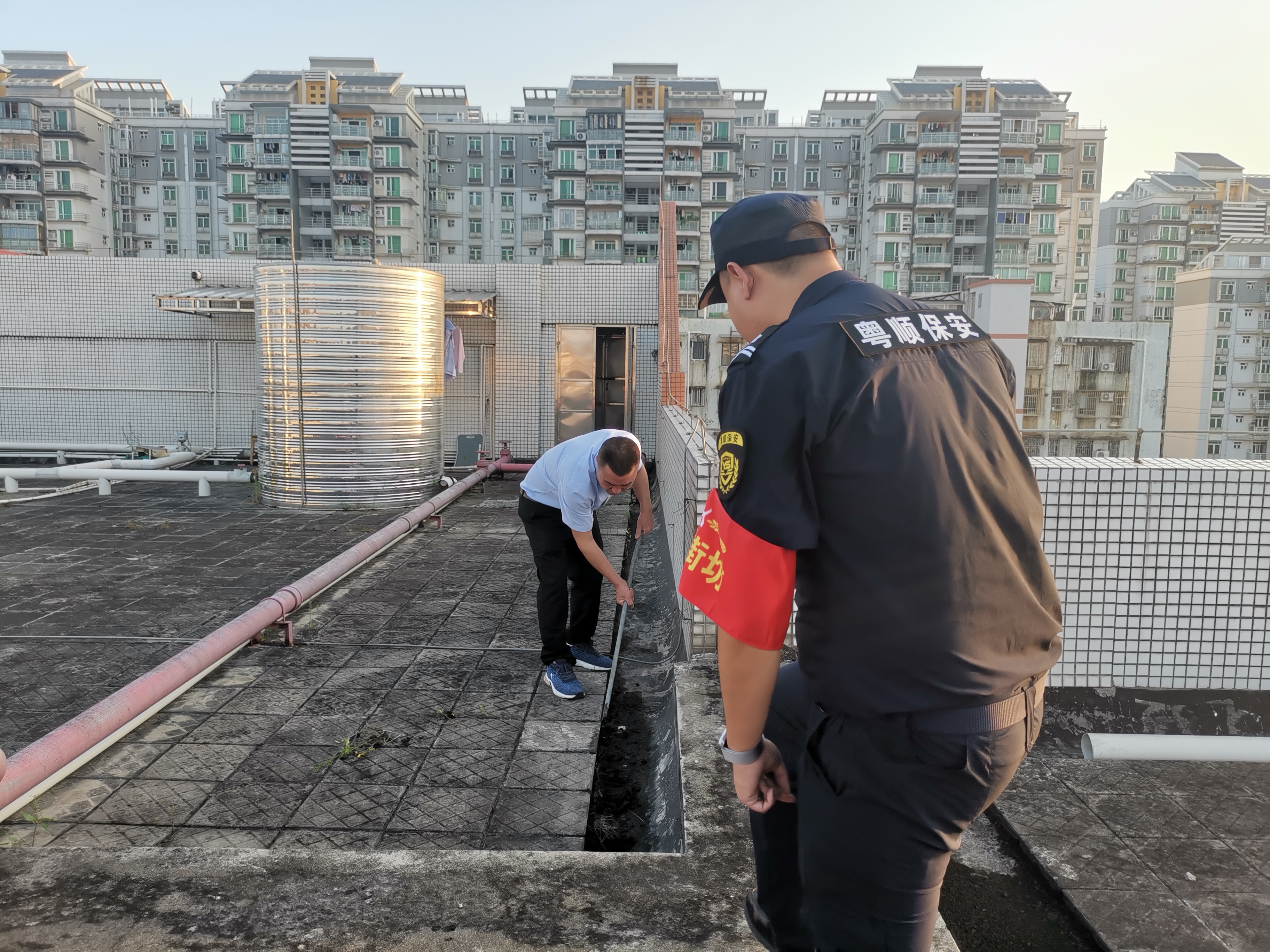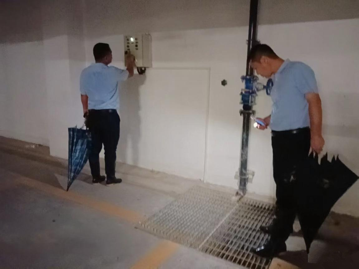 根据公司统一部署,主管领导前往各项目组织项目负责人针对地下车库、设备机房、天面排水口等重点区域开展拉网式排查,及时清理疏通,确保排水通畅。
