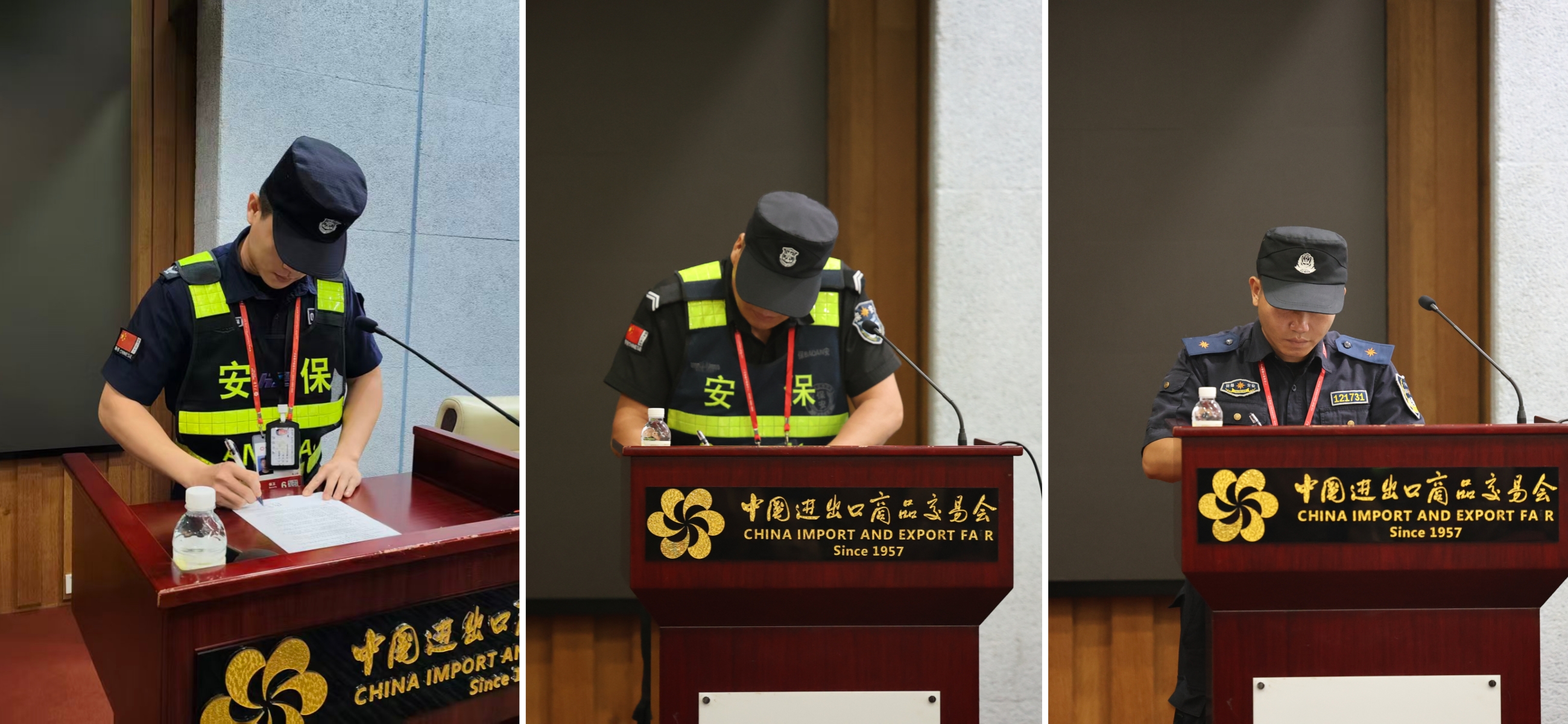 邓裕源和黄固锋两位领导也对保安工作提出相关要求,要求贯彻落实习总书记关于整治群众身边的不正之风和腐败问题的重要指示精神,认真推进作风建设,强化警示教育,同时要加强队伍建设,实施会展安保人员定期轮换制度,选拔素质高、能力强的骨干人员参与广交会服务,优先保障核心项目;以扎实细致的工作确保各项安保任务落到实处。