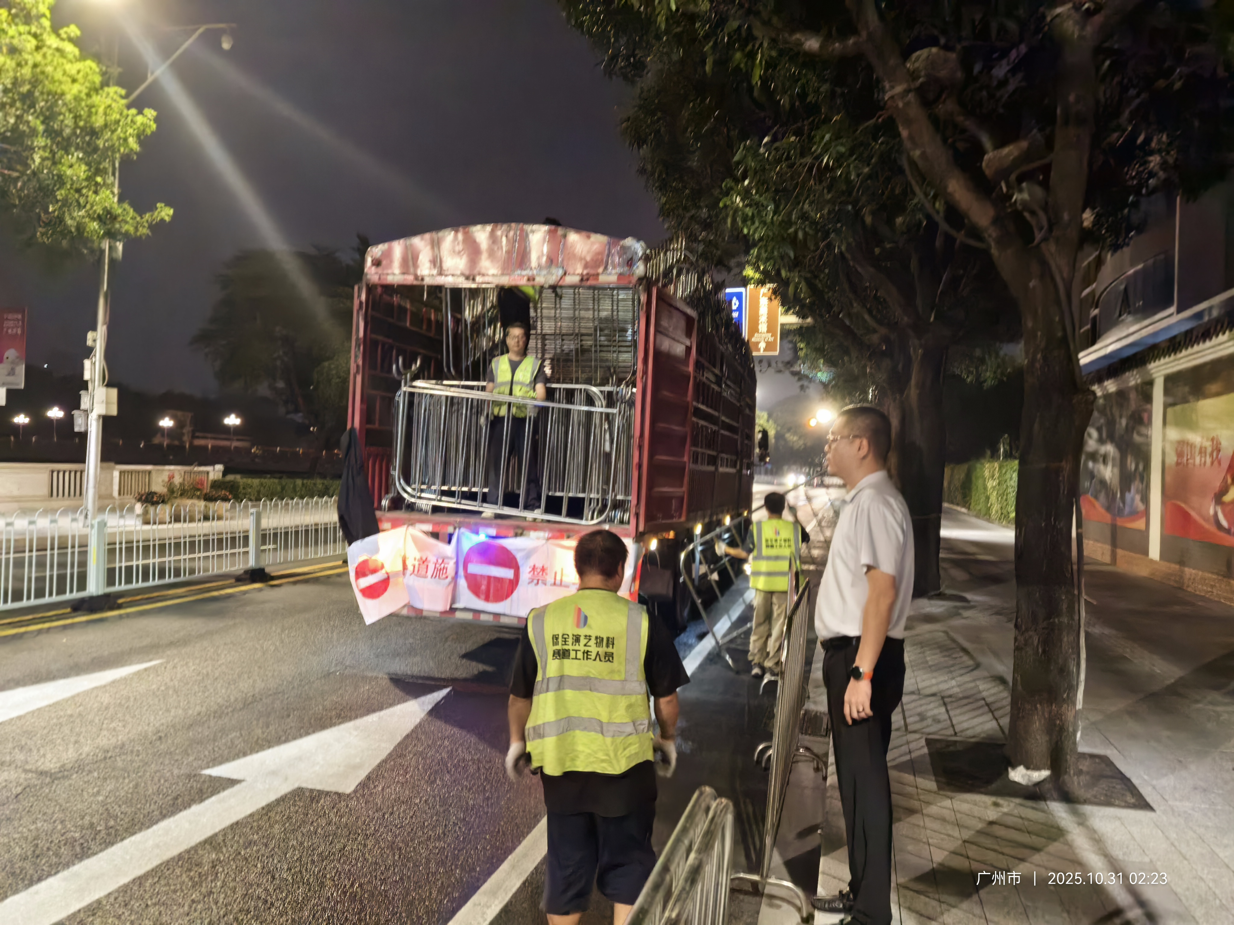 成功的背后,是无数个日夜的精心筹备。自接到十五运会火炬传递广州站安保任务以来,市总保始终将“安全第一” 放在首位,严格落实十五运会广州赛区执委会安保工作要求,精心组织专业安保力量,活动前更是利用6个夜晚累计超50小时将约15000个隔离设施安放在火炬传递路线,从安保力量的合理调配,到防护装备的精准配置,市总保将专业精神融入每一个细节,以 “零差错、零失误” 为目标,为火炬传递的顺利进行打下了坚实基础。