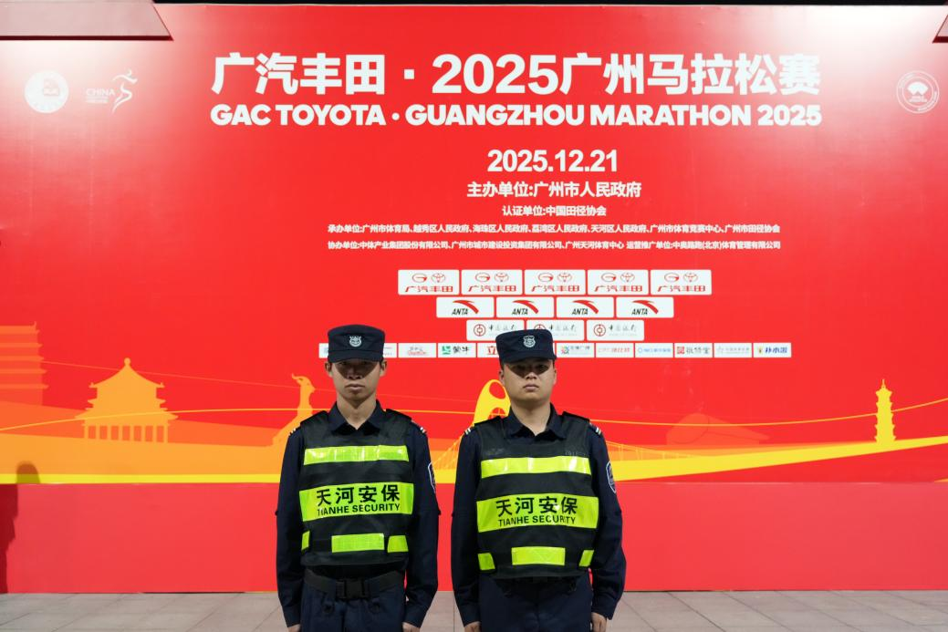 2025年12月21日,广州马拉松赛在羊城的晨曦中鸣枪开跑,2.6万名运动员怀揣激情与梦想,在赛道上奋力奔涌。当全城目光聚焦于选手们的速度与拼搏时,有一支队伍始终坚守在赛道沿线的每一个角落——他们用专业与坚守筑牢赛事安全防线,用温情与担当传递城市温度,这便是广州市天河保安服务有限公司的安保人员。当日13时许,随着最后一名选手冲过终点线,2025广州马拉松赛圆满落幕,天河保安公司圆满完成此次安保任务,以零差错、零事故的优异表现,赢得了公安机关、场地方、运动员及市民群众的高度肯定与赞誉。