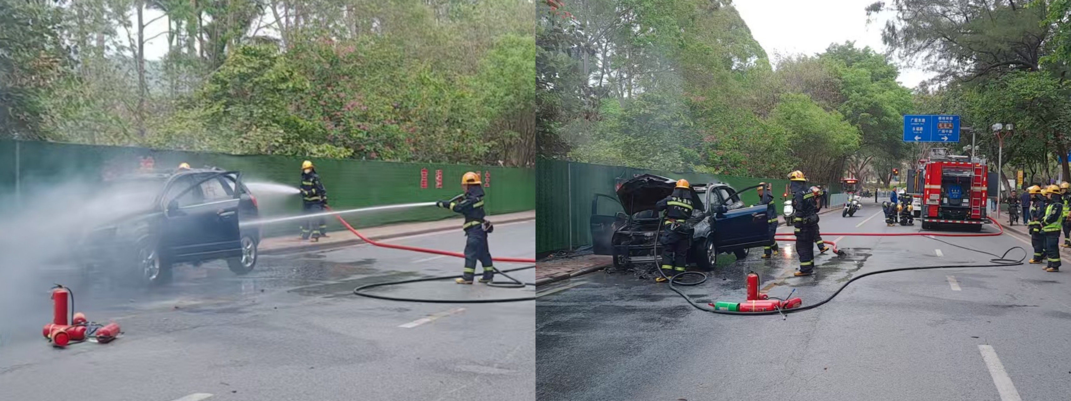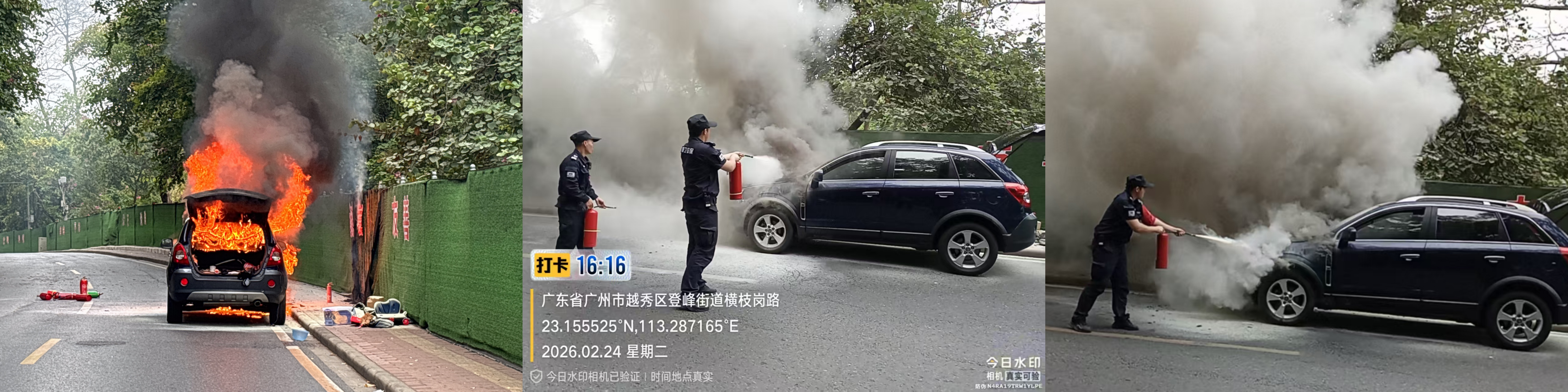 近日,麓湖公园景区路段突发一起私家车自燃险情。坦卫驻麓湖公园保安队员在巡查中第一时间发现险情,立即上报并启动应急预案。接到指令的应急队员迅速抵达现场,兵分多路,一方面对事故路段两端进行有效封堵,疏导交通、疏散围观人群;另一方面,几名应急队员同时使用多个灭火器对起火车辆开展初期灭火处置,有效遏制了火势蔓延。随后,应急队员紧密配合抵达现场的消防、公安及街道应急等部门,协助出水灭火与周边喷淋降温作业。在多方力量的共同努力下,火情被迅速扑灭,现场交通很快恢复正常,事故未造成任何人员伤亡。