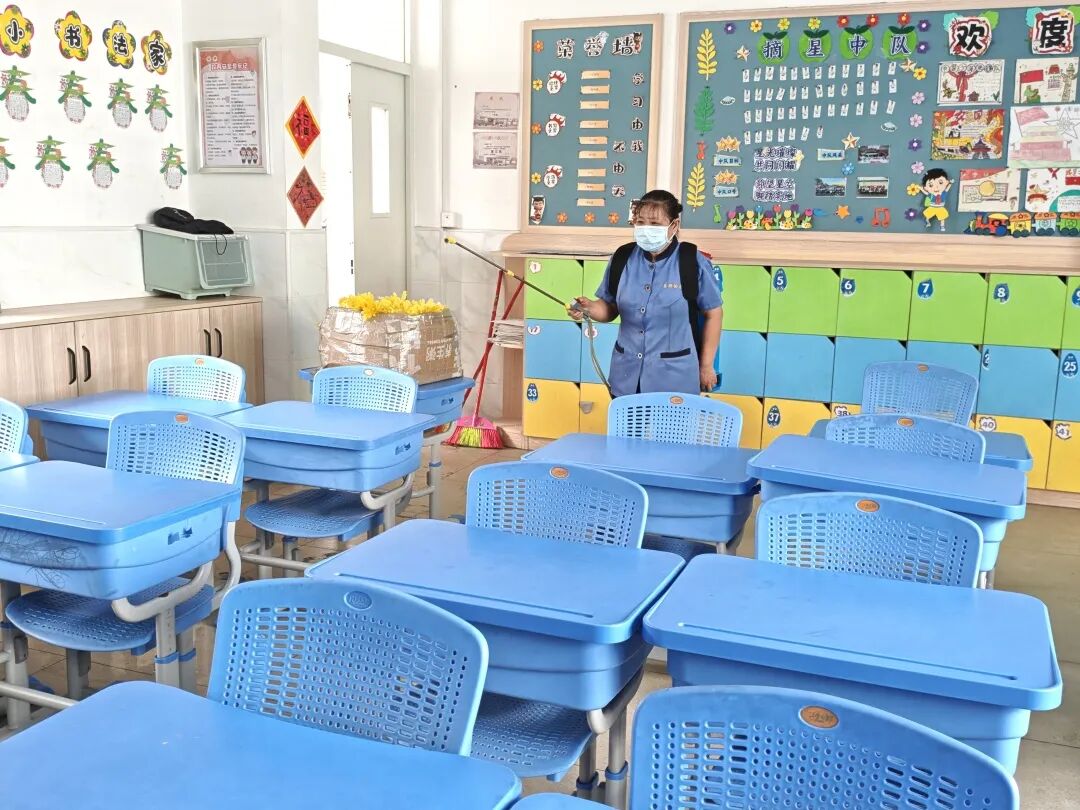 聚焦校园教室、公共区域、楼道、卫生间等重点部位,保洁人员全面开展深度清洁与消杀作业,重点擦拭门窗、扶手等高频接触区域,清理卫生死角、清运积存垃圾,确保全覆盖、无盲区,以干净整洁的校园环境迎接师生归来,全力守护健康安全。