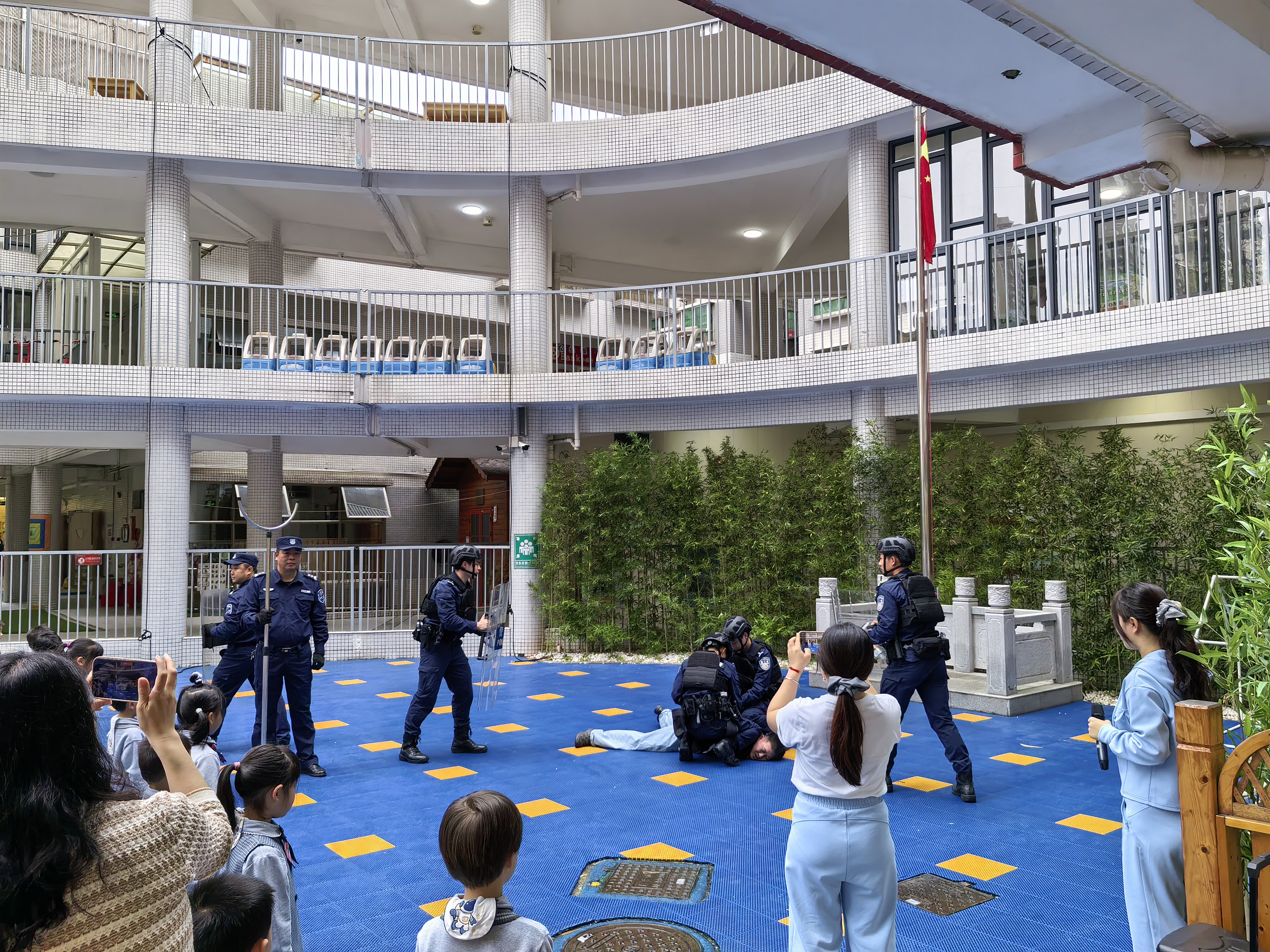 校园安全无小事,细微之处见真章。校园安全不仅需要硬核防控力量,更需要全方位隐患排查和长效化守护机制。开学前后,公司组织队员对各校园安防设施、消防器材、监控设备、应急通道等进行“地毯式”隐患排查,对问题立行立改,确保视频监控系统正常运行,防冲撞设施全面到位,应急通道畅通无阻,从源头消除安全风险。深化“警、校、企”三方联勤联动协作机制,主动对接公安机关、学校,形成安保合力,明确相应处置流程,确保遇紧急情况不慌乱、不缺位。构建起“校园内部防控、周边巡逻管控、应急联动处置”的全方位安全防护体系,让安全守护无死角、无盲区。
