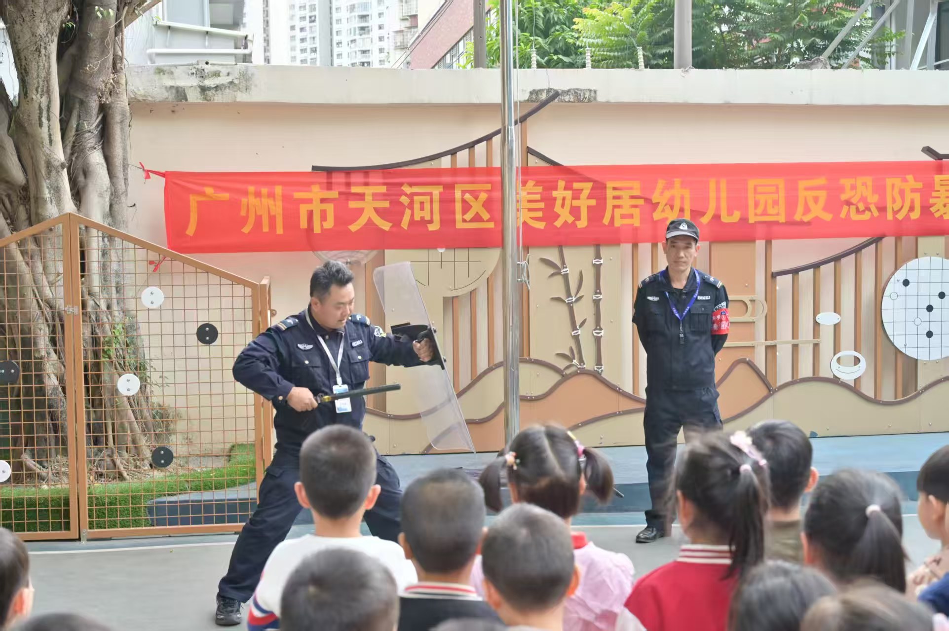 开学前夕,一场场紧锣密鼓的筹备工作全面铺开,天河保安公司结合各校园实际,细化方案、明确职责,层层压实安全责任。围绕校园突发事件处置、消防安全知识、文明礼仪规范等核心内容开展“理论+实操+演练”三位一体专项培训,开展钢叉、盾牌等安防器械规范使用实操考核,模拟“歹徒闯校”“校园滋事”等场景组织应急演练,让每一名安保人员都练就“召之即来、来之能战、战之能胜”的硬核本领,为开学安保工作筑牢能力根基。