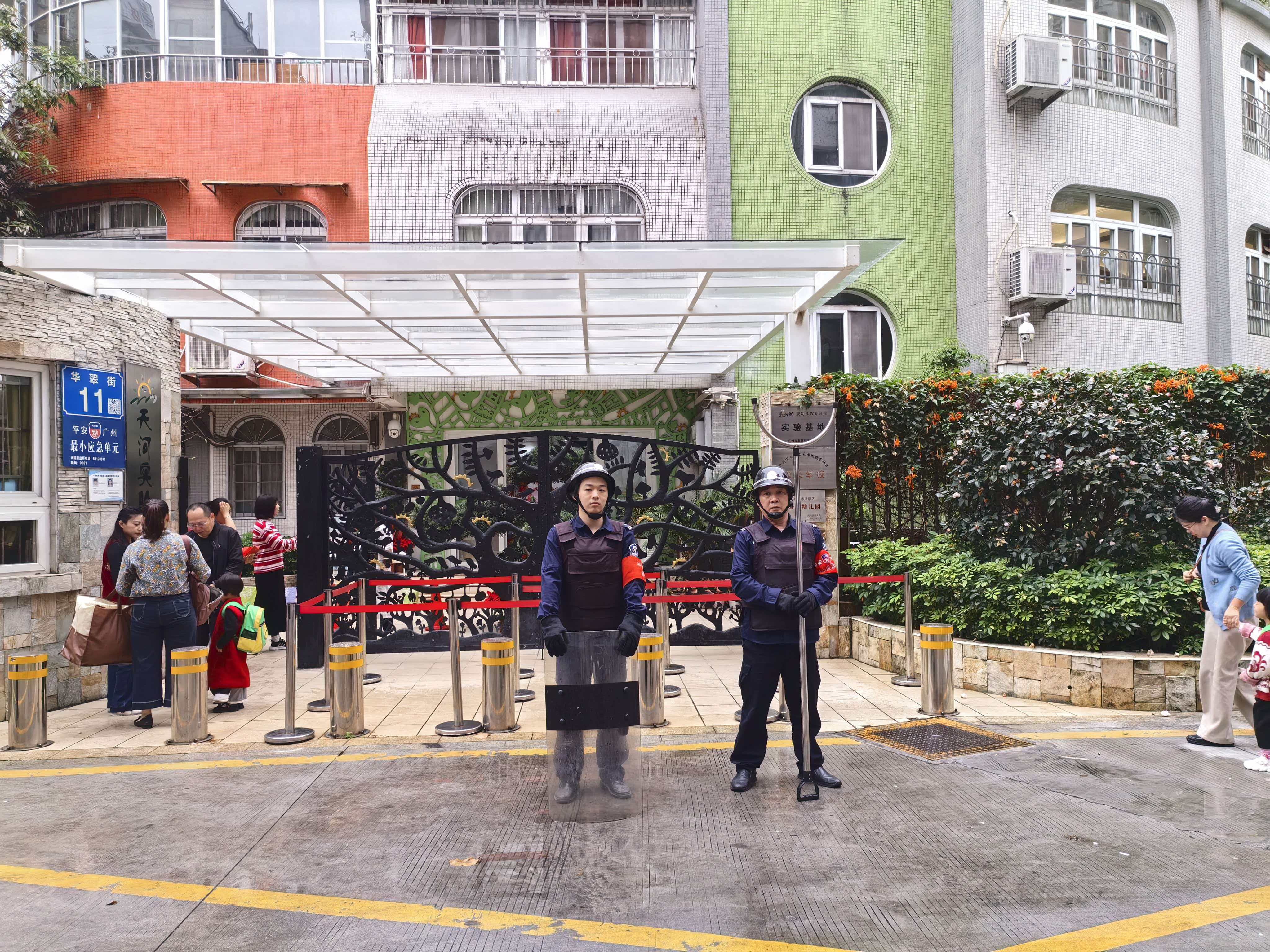 “同学慢点走,注意脚下”,开学首日,天还未亮,天河保安的安保人员已身着整齐制服,坚守在各校园门口的“护学岗”上,成为清晨校园最动人的风景线。他们严格落实校门值守制度,对入校人员、车辆进行细致核查,严防无关人员、危险物品进入校园;在学校周边,采取“定点值守+动态巡逻”模式,疏导交通、清理占道隐患,引导学生有序入校,用严谨的态度守住校园安全“第一道关口”。
