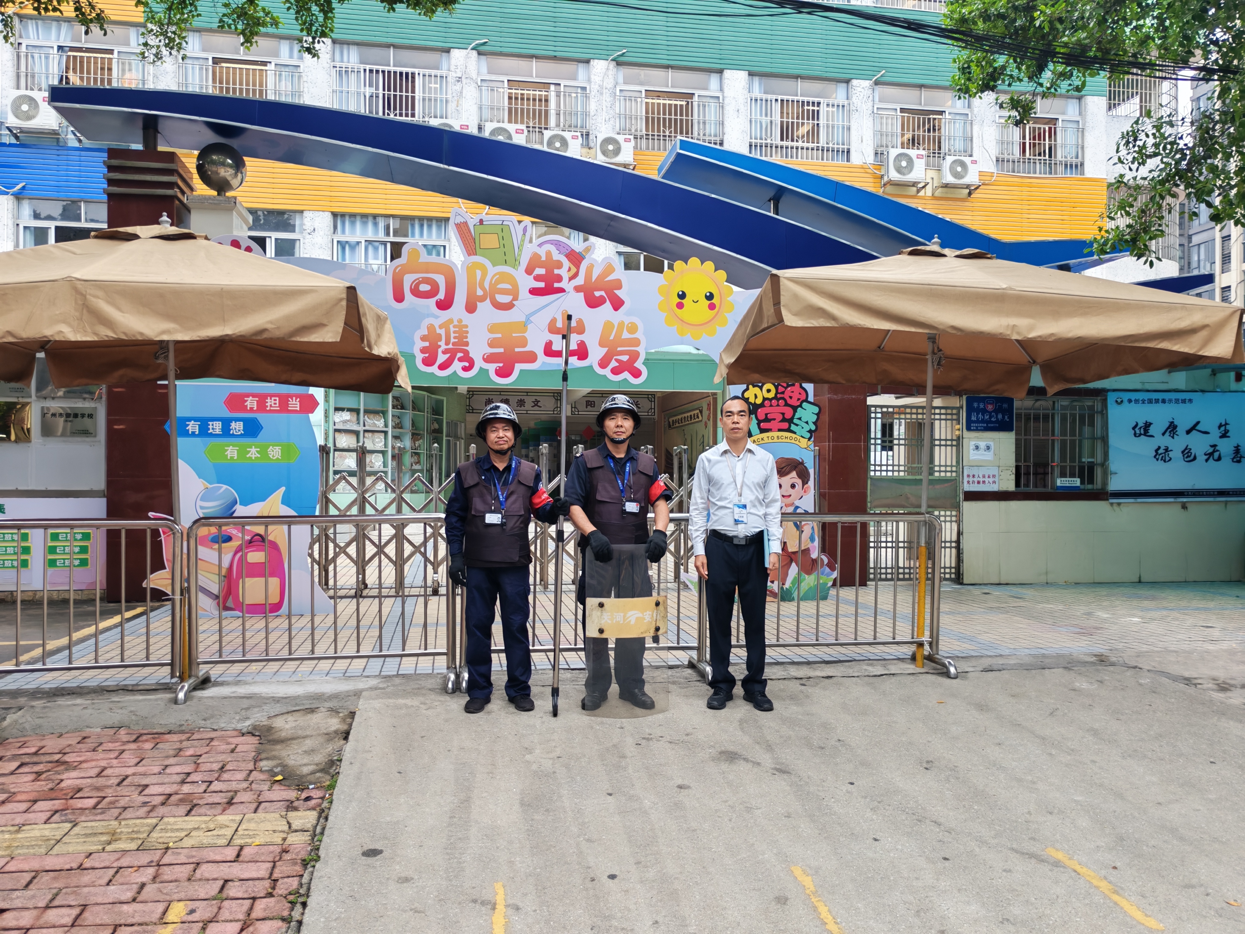 坚守的是岗位,守护的是希望,践行的是责任。天河保安的队员们,在日复一日的安保守卫中,用专业与担当守护着每一位学子的平安;在点点滴滴的服务中,用温情与善意温暖着校园的每一个角落。他们中,有坚守护学多年、被孩子们亲切称为“保安叔叔”的老同志,有主动帮扶师生、默默奉献的青年骨干,他们用平凡的坚守,书写着不平凡的责任与担当,用藏蓝身影,守护着校园的书香与安宁。