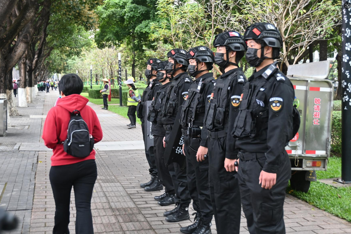 活动当天,全体执勤安保人员凌晨6点前全部到岗,严格按照既定方案执行安保任务。在安检入口、重点区域、人流密集路段等重要节点,安保人员严守岗位,文明执法,热情服务,既确保了活动安全有序,又展现了专业安保队伍的良好形象。