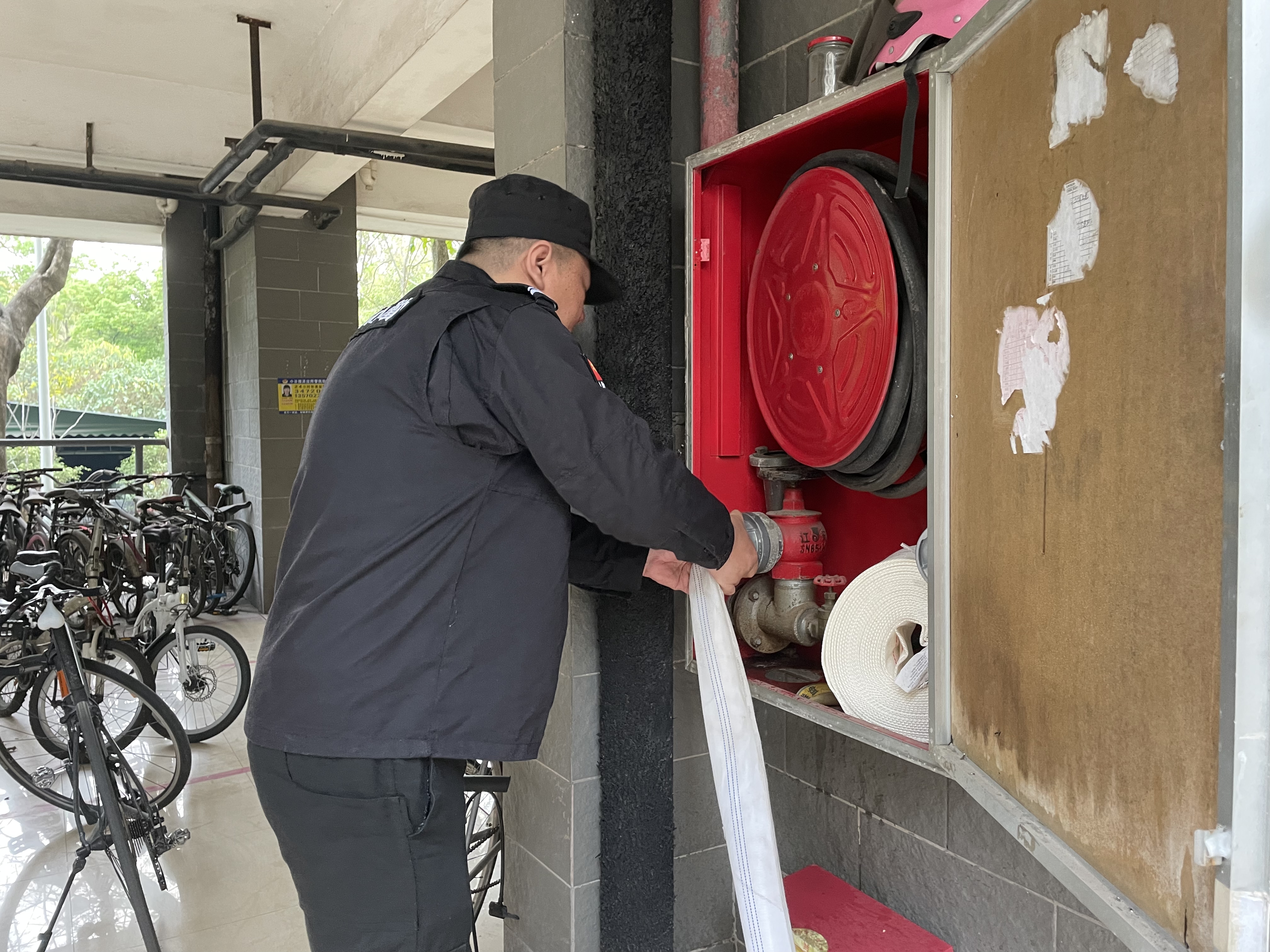 公司将此次检查作为提升服务质量、消除潜在隐患的关键举措,强调设备是安保工作的“第二战力”,坚持“全覆盖、无死角、重实效”的原则,重点围绕技防设施深度排查、通讯与照明设备测试、防暴与消防器材清查、执勤与记录台账核验等方面展开。针对即将到来的夏季用电高峰和突发天气,重点检查了对讲机、应急手电、防汛应急包等个人与班组装备的完好率,确保所有通讯设备电量充足、信号畅通,应急照明灯具能在断电瞬间正常启动。同时严格按照标准,检查防暴钢叉、盾牌、橡胶棍有无老化变形;核对灭火器压力值、生产日期,检查消防栓水带、水枪接口是否匹配、有无漏水,对即将到期的器材统一登记,立即安排更换。同步检查了各岗亭的交接班记录、设备巡检记录、故障报修记录等台账,强调“查有痕、修有据”,通过痕迹化管理倒逼日常维护责任落实。