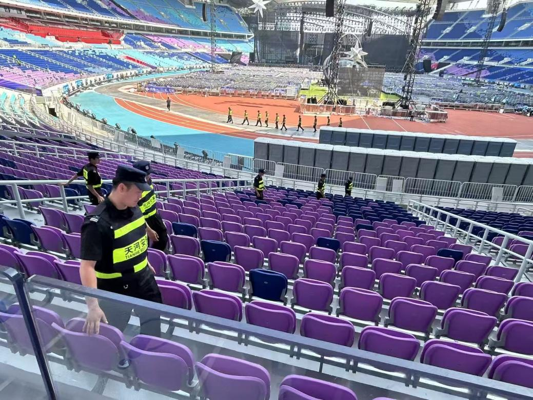 台前是万众狂欢、歌声悠扬,幕后是默默坚守、全程守护。针对演唱会人流密集、进出高峰集中、现场秩序管控难度大等特点,天河保安精准布防、科学施策,全力筑牢安全屏障:提前细致排查并加固场地外围防护、隔离设施,从严对内场、看台、环场通道及周边全域开展全覆盖安检、排爆作业,从源头杜绝各类安全隐患;在验票口、地铁口两大重点人流区域,专门增设3人应急处置小组,专人专职维护入场验票秩序,快速处置人员冲卡、拥挤扎堆等突发状况;全体安保人员配带防暴防护装备,随时处理紧急险情,确保第一时间开展物理隔离、现场人员疏导管控,快速稳妥化解安全风险,全力保障场馆内外通行有序、安全稳定。
