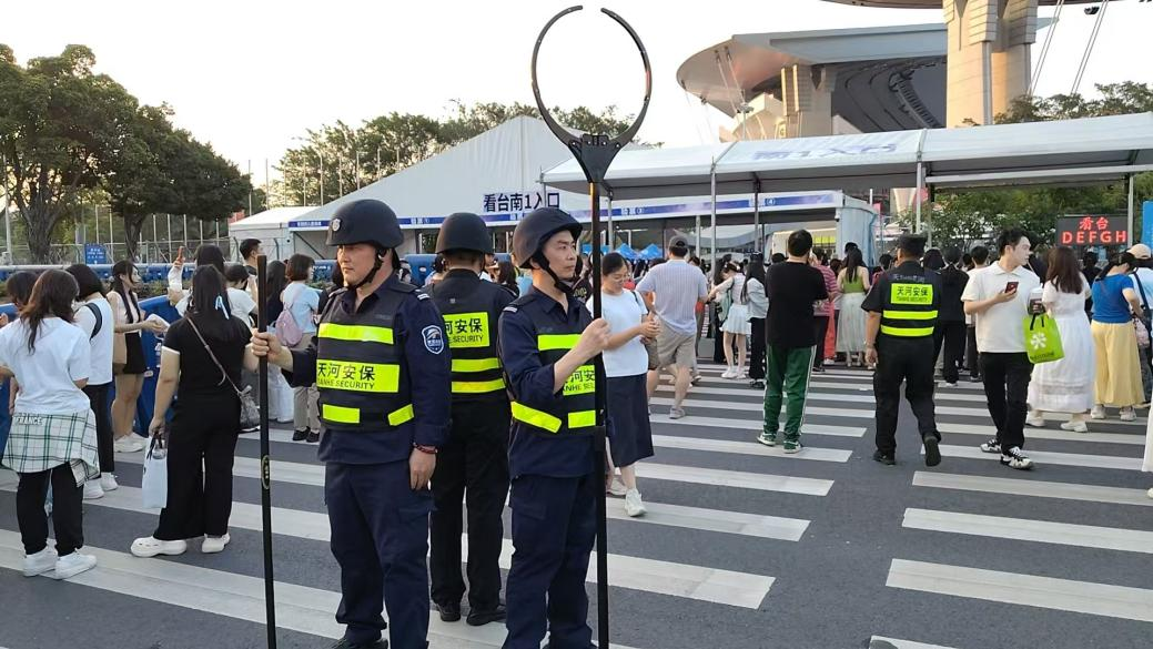 两天日夜坚守,全程闭环守护。天河保安以严谨专业的安保预案、规范高效的应急处置、贴心周到的暖心服务,全方位护航这场星光盛宴,用责任筑牢安全屏障,用坚守守护万家安心,为本次大型演艺活动交出了一份满分安保答卷。