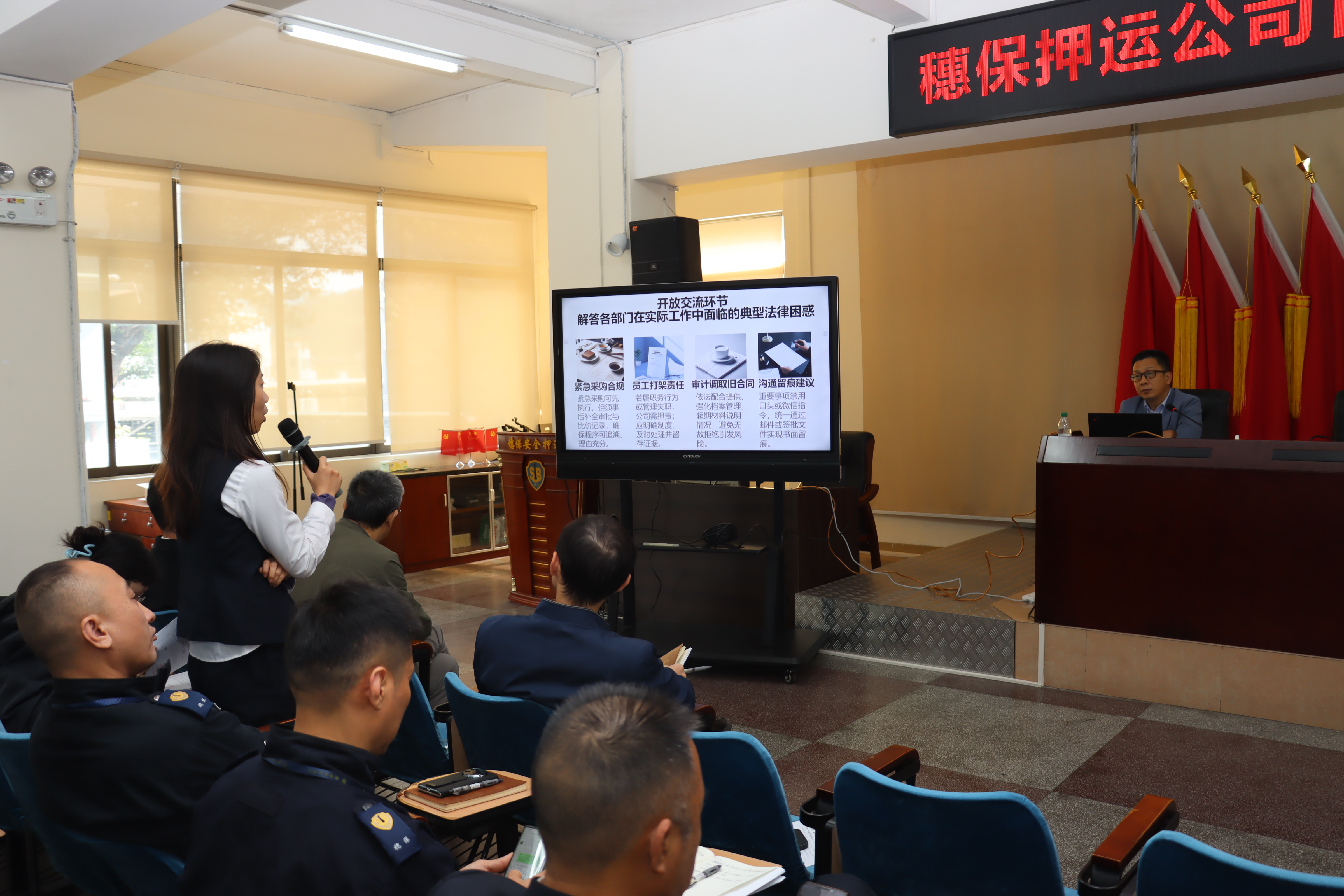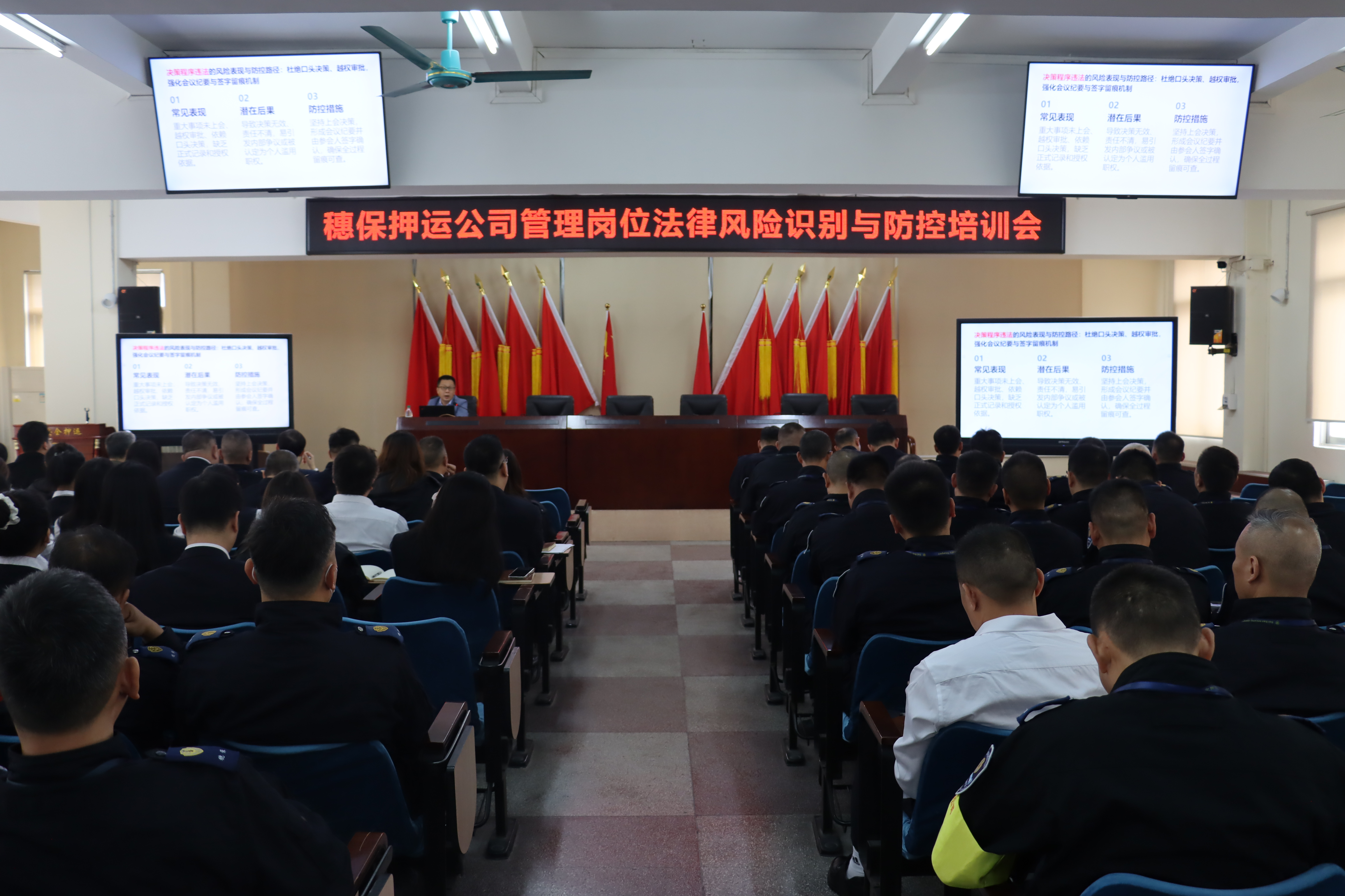 为推进队伍规范化法治化建设,提升管理人员风险防范意识,增强依法办事能力,根据集团公司工作部署,穗保押运公司于2025年12月12日上午开展“管理岗位法律风险识别与防控”培训,近100名各部门中层管理人员及具体工作人员参训。邀请到广东南华工商职业学院赖勇军讲师主讲。