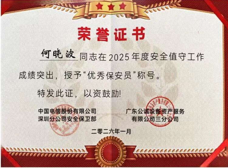 2026年1月16日下午,2025年度深圳电信物业优秀保安员表彰大会在电信市话大厦隆重举行。会议回