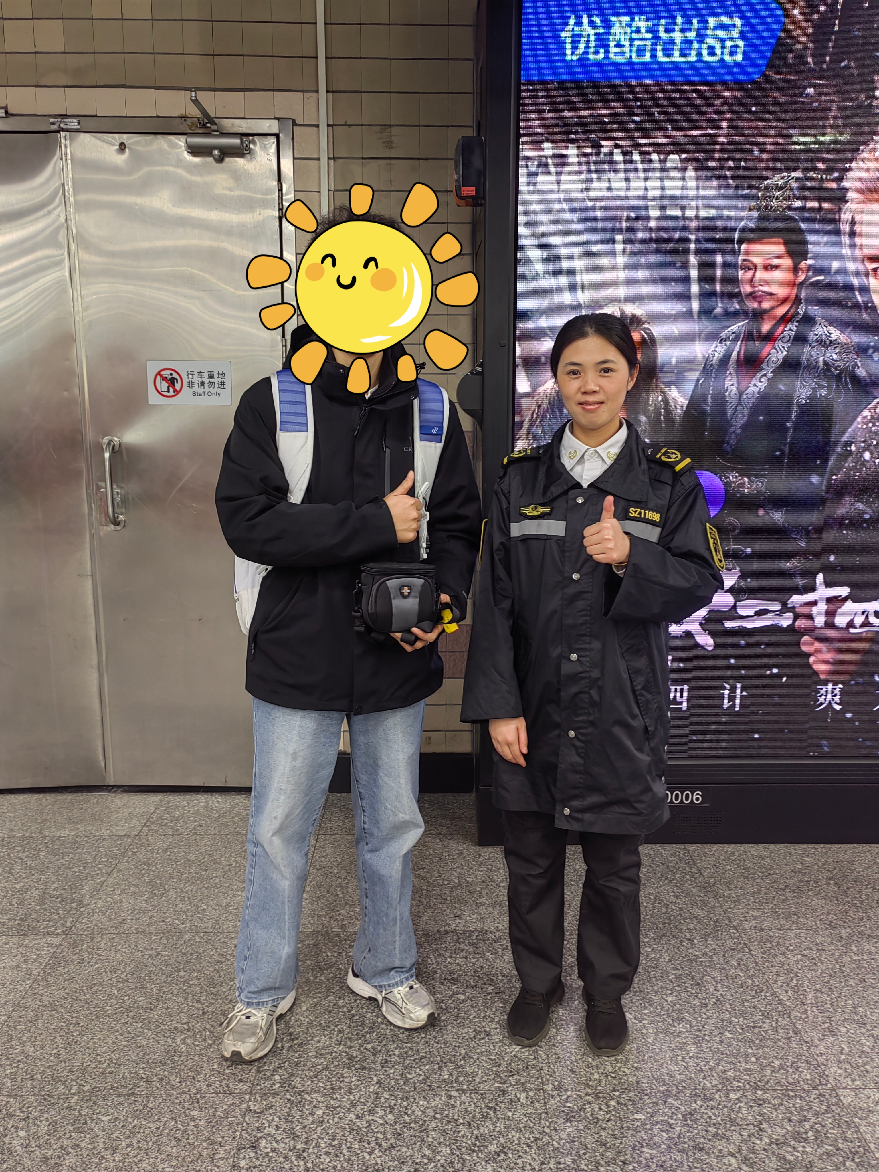 数小时后,焦急的乘客返回寻找,安检人员与乘客仔细核对物品信息。在确认无误后,这台贵重的照相机得以完璧归赵。乘客的感激之情溢于言表,当场拨打地铁服务热线96891进行表扬。