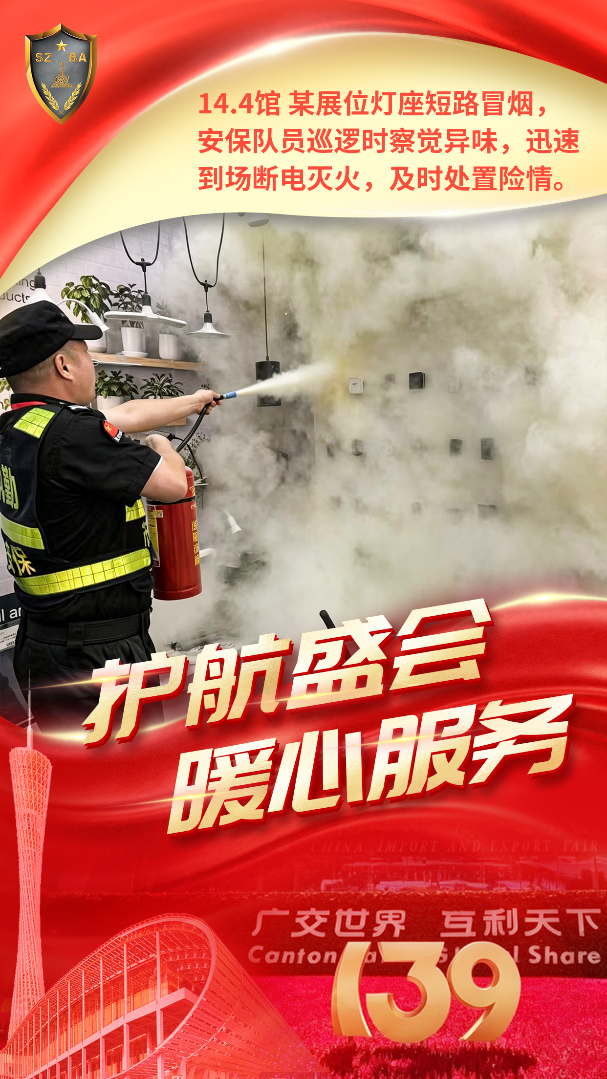 当前,第139届广交会已进入第二期展会,市总保安保队员将继续坚守岗位、履职尽责,用他们的责任与温情继续助力本届广交会顺利开展。