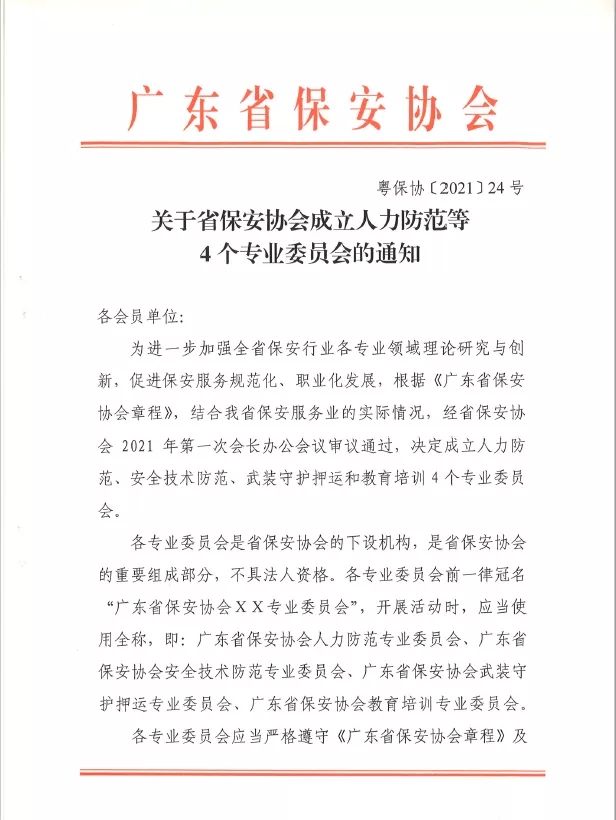 关于省保安协会成立人力防范等 4个专业委员会的通知